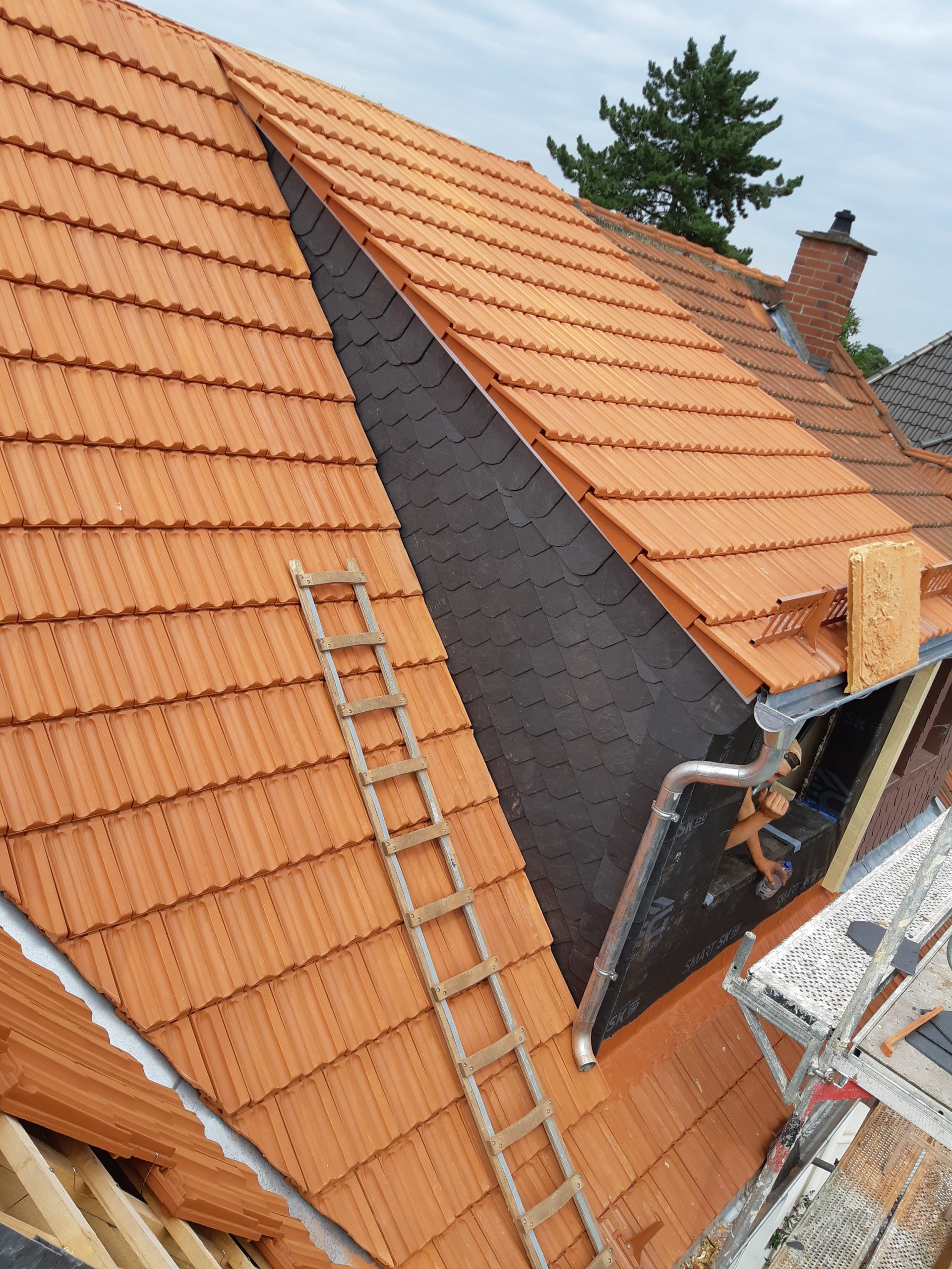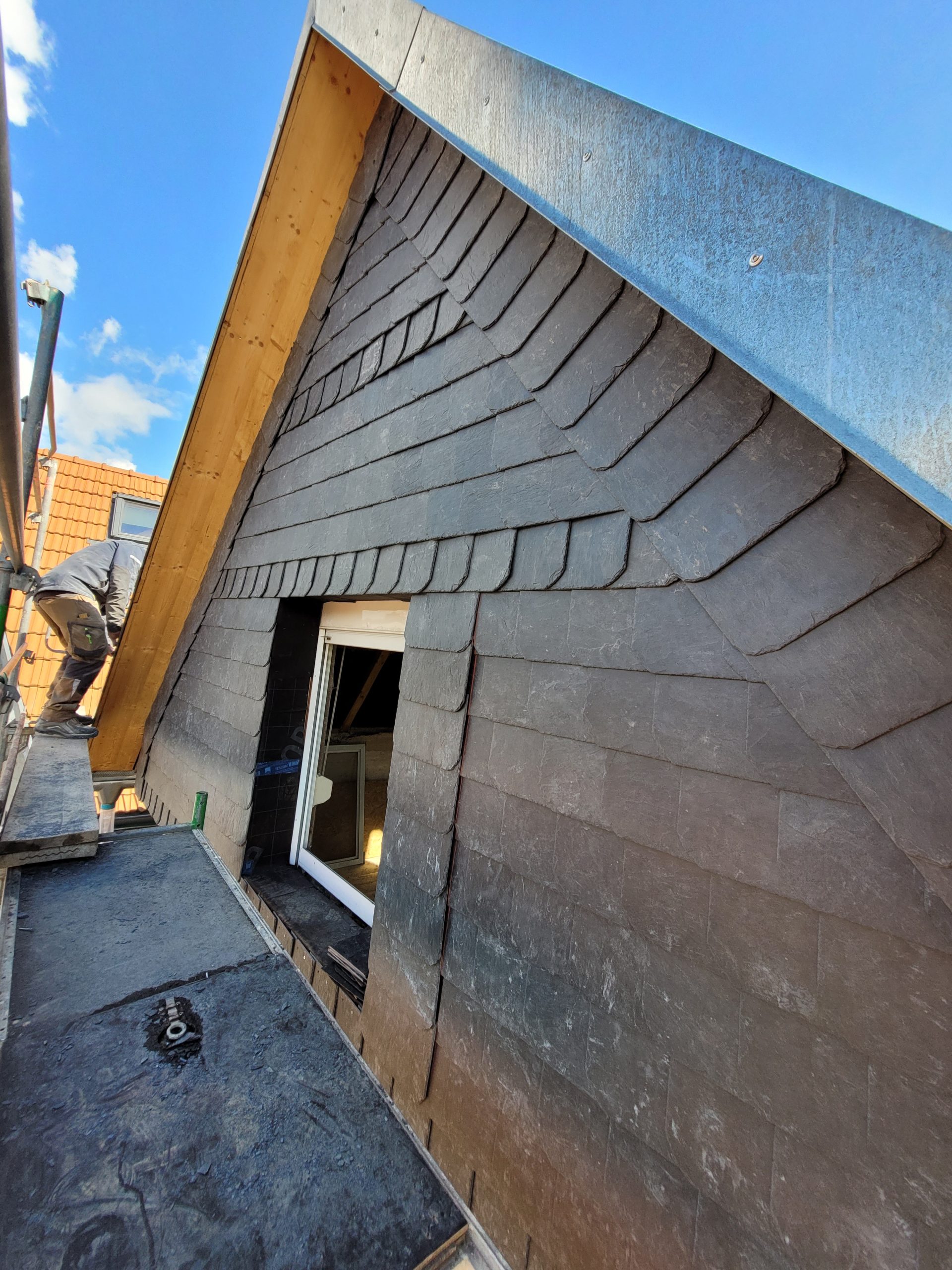 „Ihr Haus aus einer Hand“ – Vom ersten Balken bis zum letzten Ziegel. Ob klassische Frankfurter Pfannen oder elegante Biberschwänze – wir decken Ihr Dach fachgerecht und langlebig.